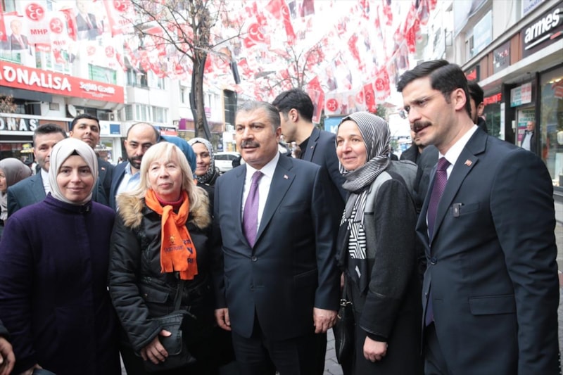 Bakan Koca, AK Parti Bolu İl Başkanlığı önünde AK Parti Bolu Belediye Başkan Adayı Muhammed Emin Demirkol ve AK Parti İl Başkanı Suat Güner ile partililer ve sağlık personeli tarafından karşılandı.