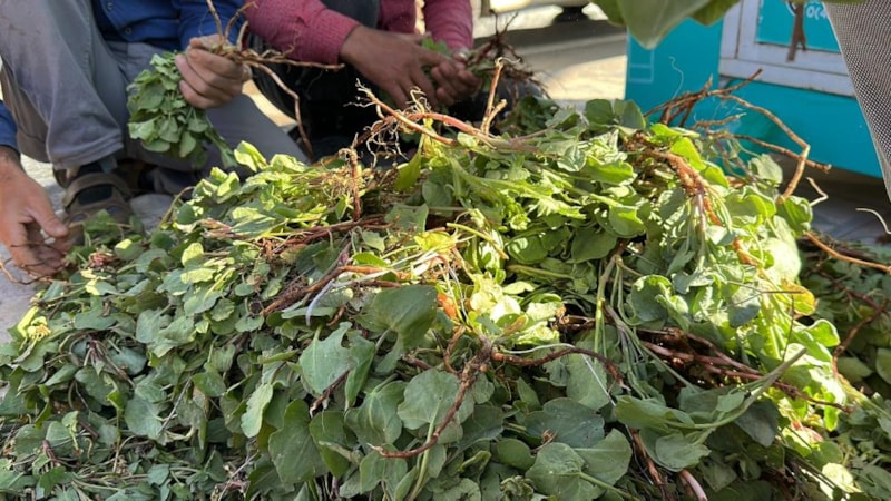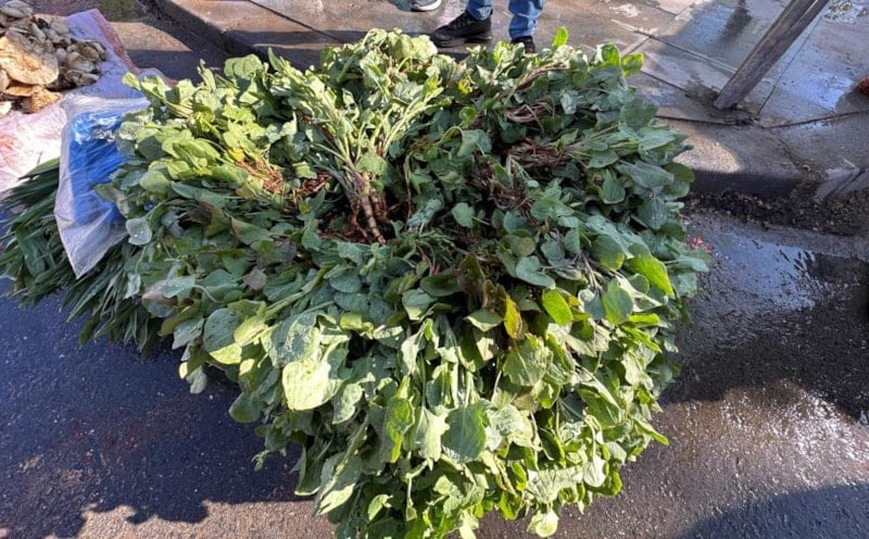 Dikenlerin arasında dağlarda yetişen kuzu kulağını toplamak için sabah namazından sonra yola çıkan Ömer Karabulut, sokak ortasında kurduğu tezgahta kilosunu 35-40 lira arasında satıyor.