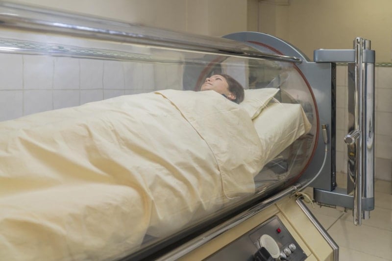 Bu tedavide ise hasta, özel tasarlanmış bir odada ya da tüpte, normal basıncın iki ila üç katına çıkarıldığı bir ortamda yüzde 100 oksijen soluyor.