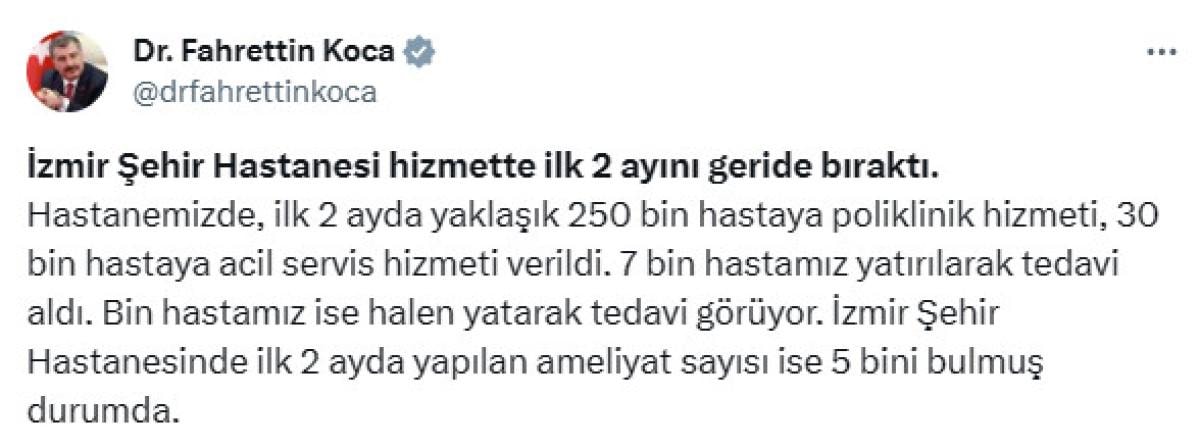 7 bin hastamız yatırılarak tedavi aldı. Bin hastamız ise halen yatarak tedavi görüyor. İzmir Şehir Hastanesinde ilk 2 ayda yapılan ameliyat sayısı ise 5 bini bulmuş durumda.