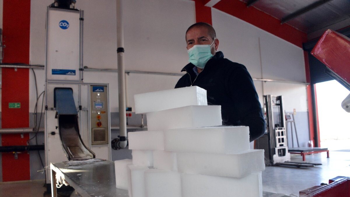 Bu nedenle buzun çıplak elle tutulmaması gerektiğini ifade eden Kervancıoğlu, "Kuru buzu Kahramanmaraş'ta üretiyoruz ve burada başka üreten tesislerimiz de yok. Buzu, Türkiye'nin her tarafına da sevk ediyoruz.