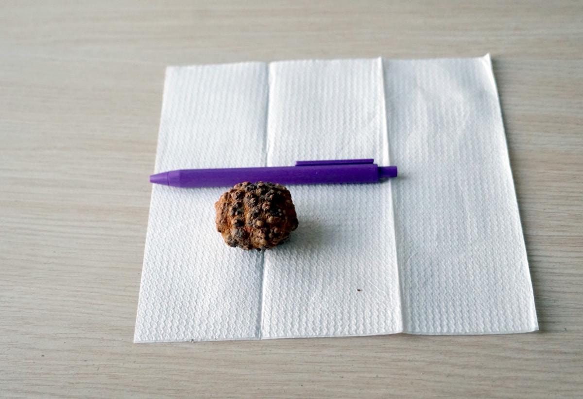 Çocuklarım, beni alıp hastaneye götürdü. Şimdi iyiyim fakat az da olsa ağrım var, o kadar da olacak. Bu taşı ben yaklaşık 9-10 yıldır taşıyorum. Benim ağrılarım vardı. Şimdiye kadar hep geçer diye umursamadım, düşer dedik ama düşmedi. Düşmenin de çaresi yokmuş. Bir hayli büyük bir taş, yumurta büyüklüğünde bir taş.