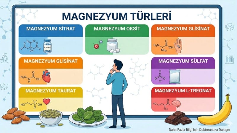 Öte yandan magnezyum tek bir formda bulunmaz; farklı bileşiklerle birleşerek çeşitli türlere ayrılır ve her biri vücutta farklı etkiler yaratır. Bu nedenle takviye seçerken ihtiyaca uygun formu belirlemek büyük önem taşır.