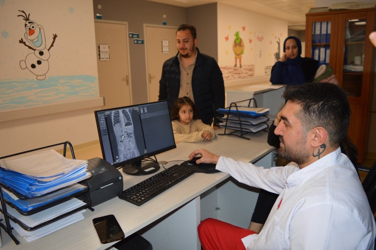 Diğer gün öğle saatlerinde ağrısı devam etti. Tekrar hastane gittik ve röntgen çektik. Yabancı cisim yuttuğunu öğrendik ve bizi Mardin Eğitim ve Araştırma Hastanesi’ne sevk ettiler.