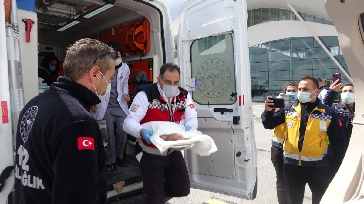 Sivas Numune Hastanesi'nden ambulansla alınan Demirkaya bebek, Nuri Demirağ Havalimanı’na getirildi.