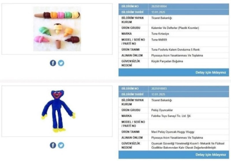 Huggy Wuggy karakterine ait pelüş oyuncak gibi ürünler, çocuk sağlığına yönelik riskler taşıdığı gerekçesiyle toplatılmıştı.