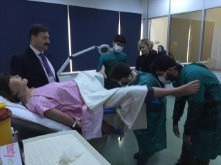 "Tıp Fakültesi bünyesinde Mesleksel Beceri Laboratuvarımız bulunuyor. Burada öğrencilerimiz, mezun olduktan sonra başlayacakları sağlık sektöründe hastaya zarar verme olasılıklarını en aza indirmek için maketler üzerinde çalışma imkanı buluyor. Biz buraya son teknolojiyle yapılmış 'cansız kadın manken' aldık. Bu manken, öyle basit değil, doğum sancısı çekebiliyor, sancıyı dışarı yansıtabiliyor, karnında kendisi gibi küçük bebek maketi bulunuyor ve bunu doğumla dünyaya getirebiliyor. Tüm öğrencilerimiz önce bu manken üzerinde doğumu izliyor. Sonra pratiğe geçiyoruz ve mankene doğum yaptırıyor. Böylece öğrencilerimiz, doğum yapan bir kadının hissettiği acıyı ve dışarı yansıtmasından tutun, bebeğin dünyaya geliş anına kadar her aşamasına tanıklık ediyorlar, merak ettikleri kısımları anında öğretim üyelerine sorarak bilgi alabiliyorlar."
