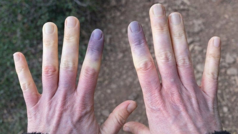 Söz konusu hastalıkta damarlar soğuğa karşı aşırı tepki verir, kan akışı azalır ve ciltte önce beyaz, ardından mavi ve sonrasında kızarıklık görülür.