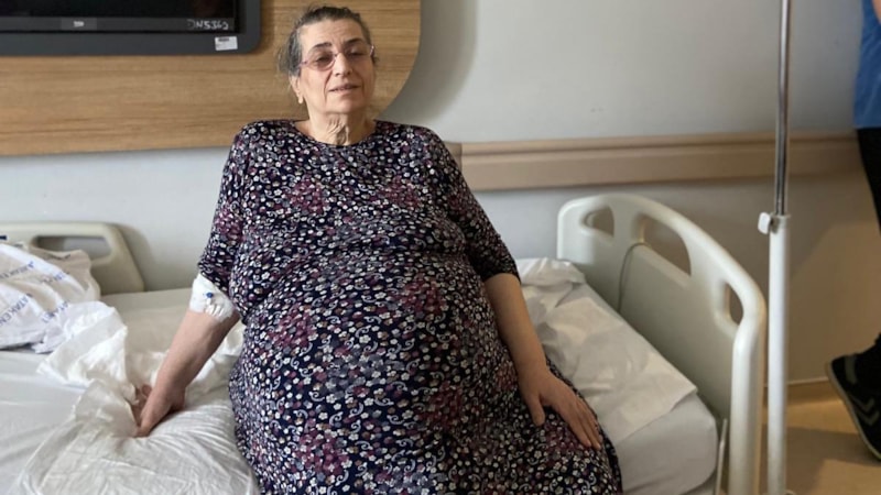170 kiloya çıkan ve yatağa bağımlı hale gelen Hülya Öztürk, ağrılarının dayanılmaz hale gelmesiyle doktora başvurdu. Doktorları şoke eden muayenede, hastanın yumurtalıklarında çapı 70 santimetreye ulaşmış dev bir tümör olduğu anlaşıldı.