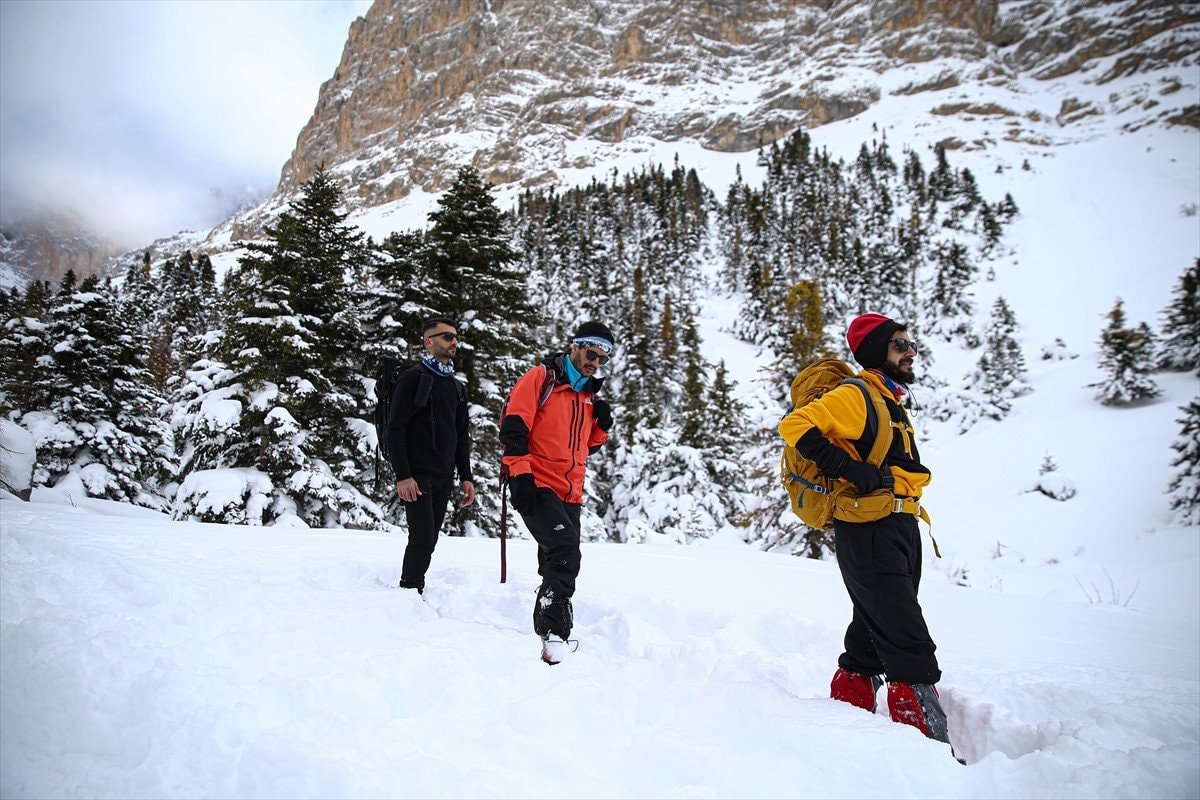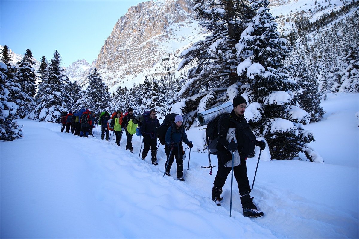 Kilikya Dağcılık ve Doğa Sporları Kulübü üyeleri, Niğde sınırındaki Emli Vadisi’nde zorlu parkurlarda ilerleyip kamp yaptı. Sporcular, karla kaplı yolları aşarken hem dayanıklılıklarını test etti hem de doğanın içinde vakit geçirdi.