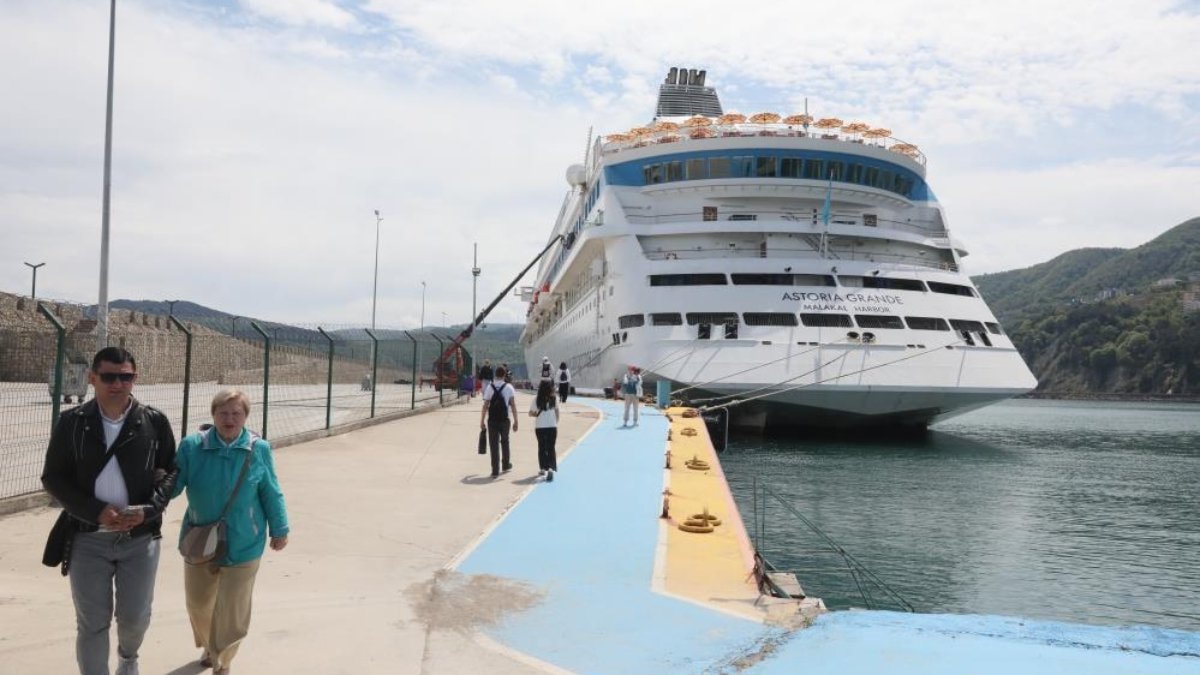 Bartın’ın tarihi ve turistik cazibe merkezi Amasra, 193 metre uzunluğa ve 30 metre genişliğe sahip Astoria Grande adlı dev kruvaziyeri tekrar ağırladı. Bugün Amasra Limanı’na yanaşan dev gemi, 992 yolcusuyla birlikte 442 mürettebatı taşıyarak 69. seferini gerçekleştirdi. Bu seferle birlikte, Rusya'dan bölgeye toplamda 56 bin 52 yolcu ve 29 bin 853 mürettebat ile 85 bin 905 turist geldi.