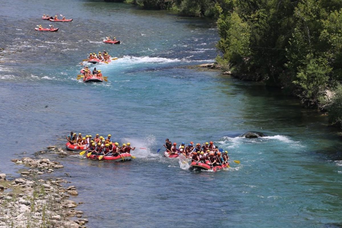 Sabahın erken saatlerinde tur firmalarının servisleriyle bölgeye ulaşan turistler, profesyonel rehberler eşliğinde parkur hakkında bilgilendiriliyor. Gerekli ekipmanlarını kuşandıktan sonra bot ya da kanolarına binen katılımcılar, yaklaşık 14 kilometrelik parkurda doğayla iç içe bir serüvene atılıyor.