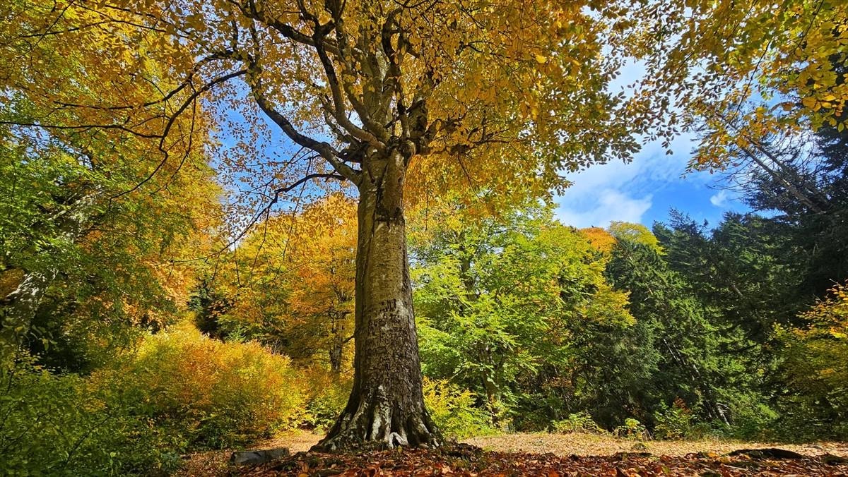 Kaçkar Dağları Milli Parkı’nın eteklerinde yer alan yaylada, ağaçlar sarı, kırmızı ve turuncu tonlara bürünerek kartpostallık manzaralar oluşturdu.