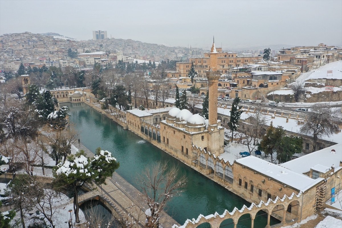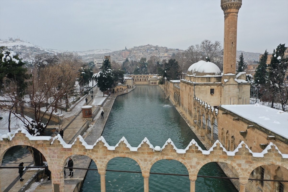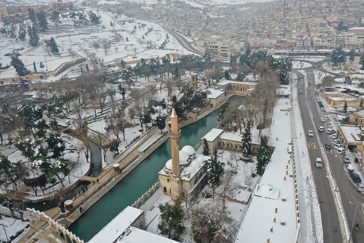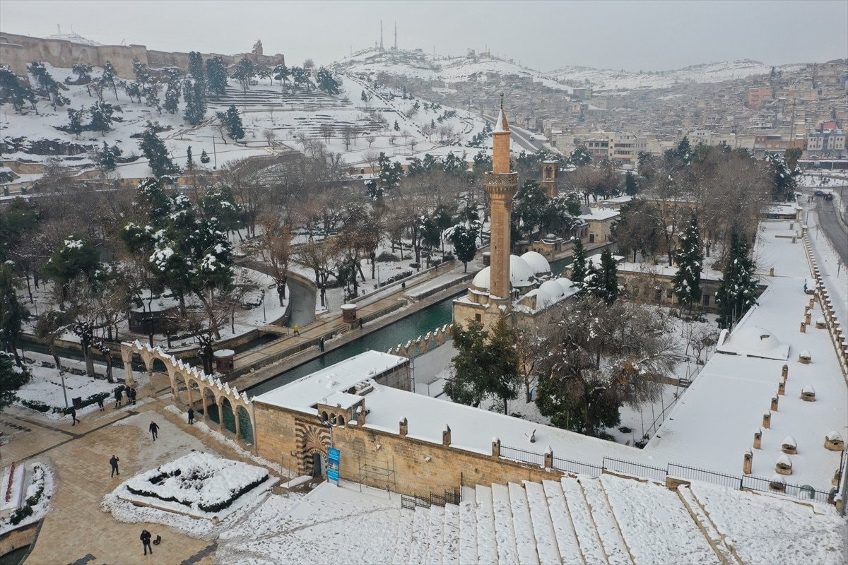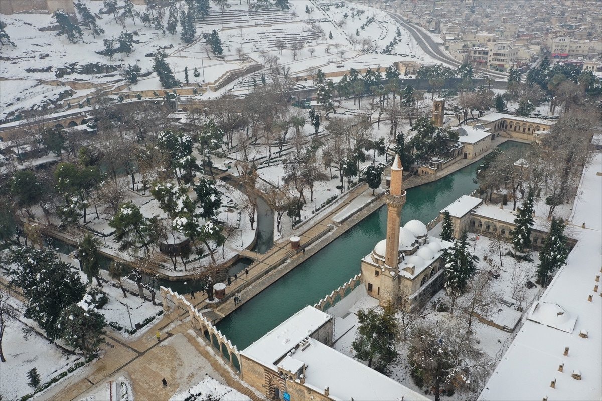 - Balıklıgöl ve çevresindeki tarihi yapılar beyaz örtüyle dikkat çekici görüntüler sundu.