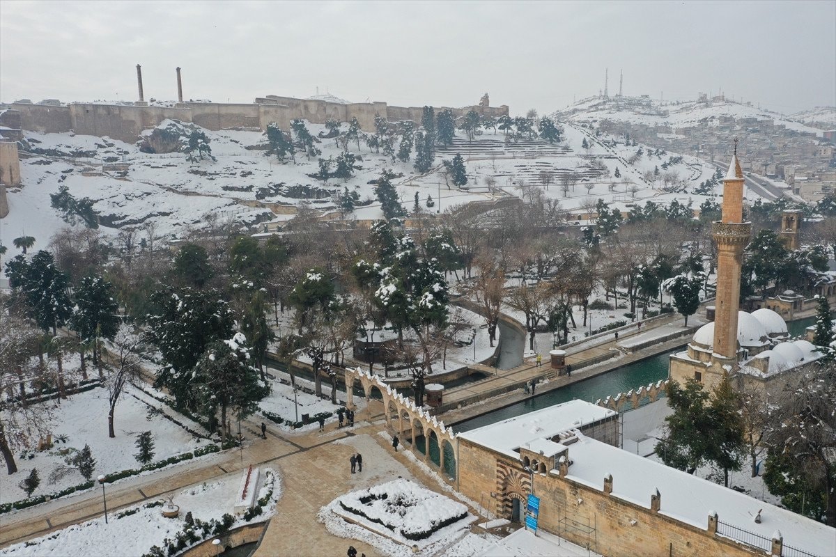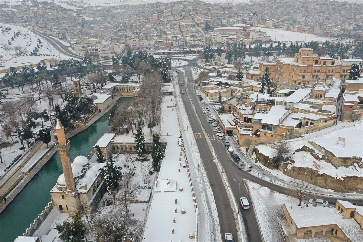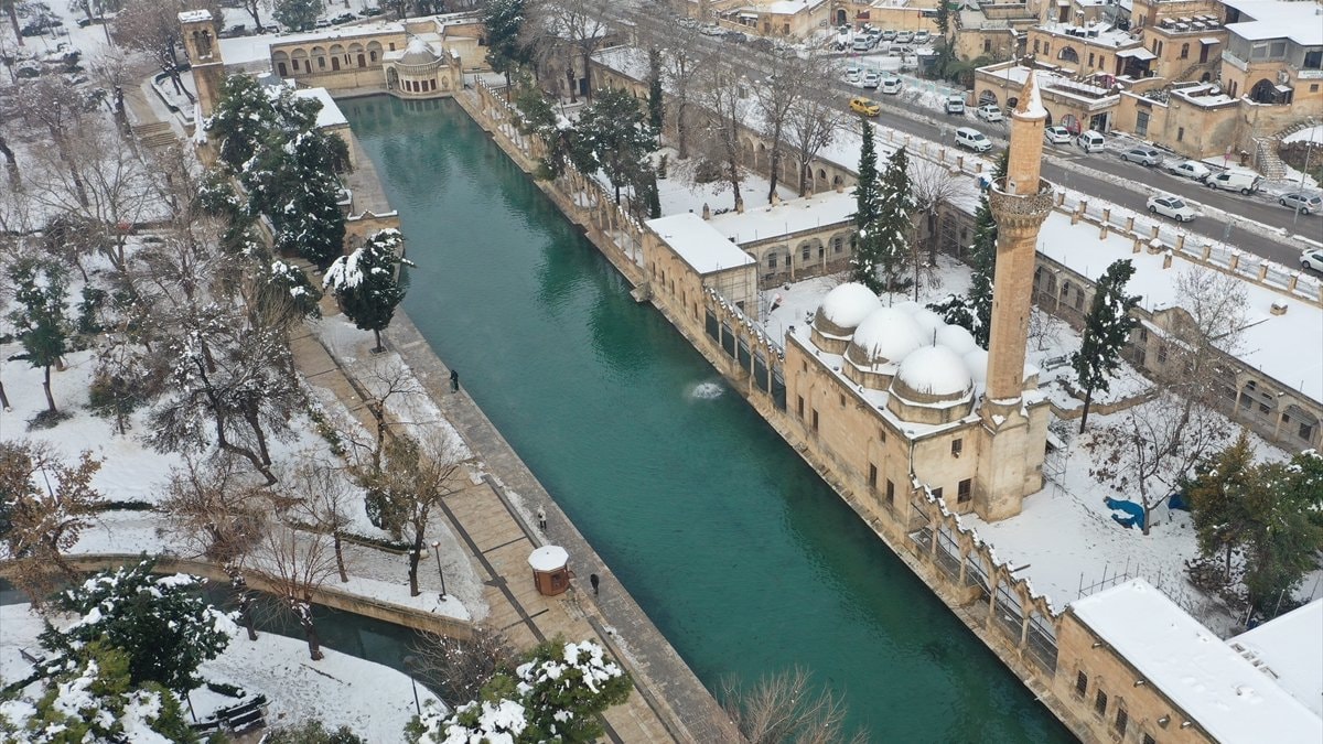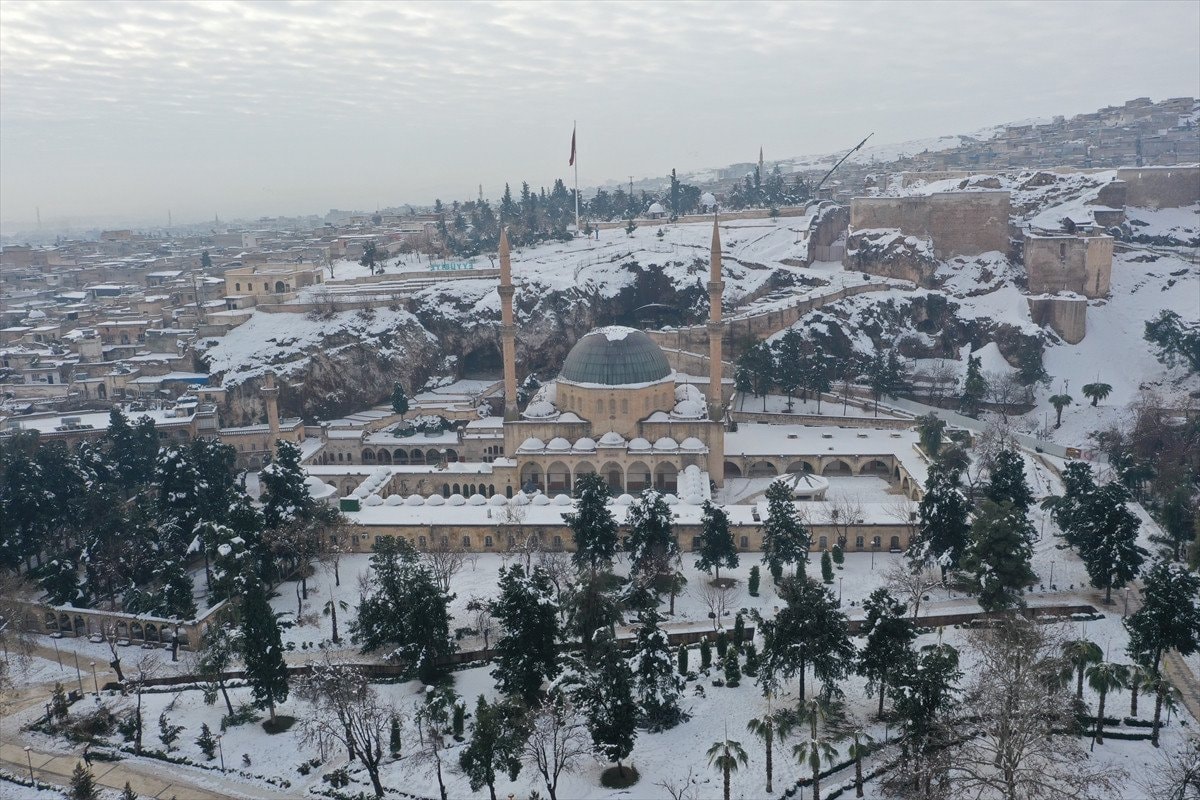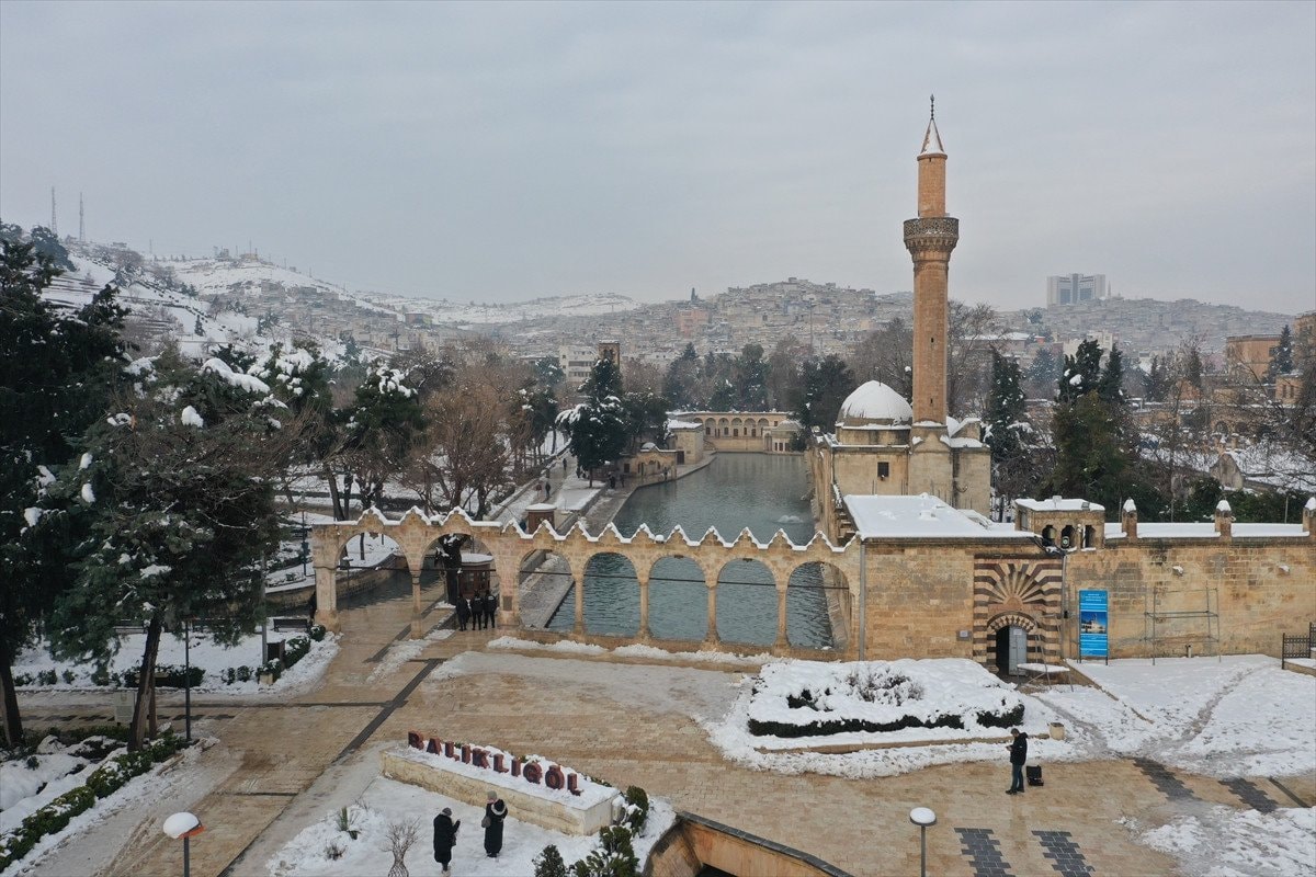 - Balıklıgöl ve çevresindeki tarihi yapılar beyaz örtüyle dikkat çekici görüntüler sundu.