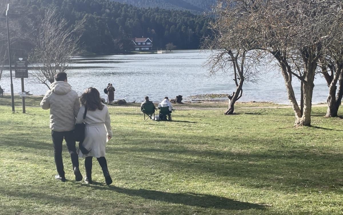 Yeşillikler içinde piknik de yapan ziyaretçiler, hafta sonunu dinlenerek geçirdi. Göl, ormanlar, yürüyüş yolları ve piknik alanlarından oluşan dağlık tabiat parkında çiftler baş baş tatil keyfi yaşadı.
