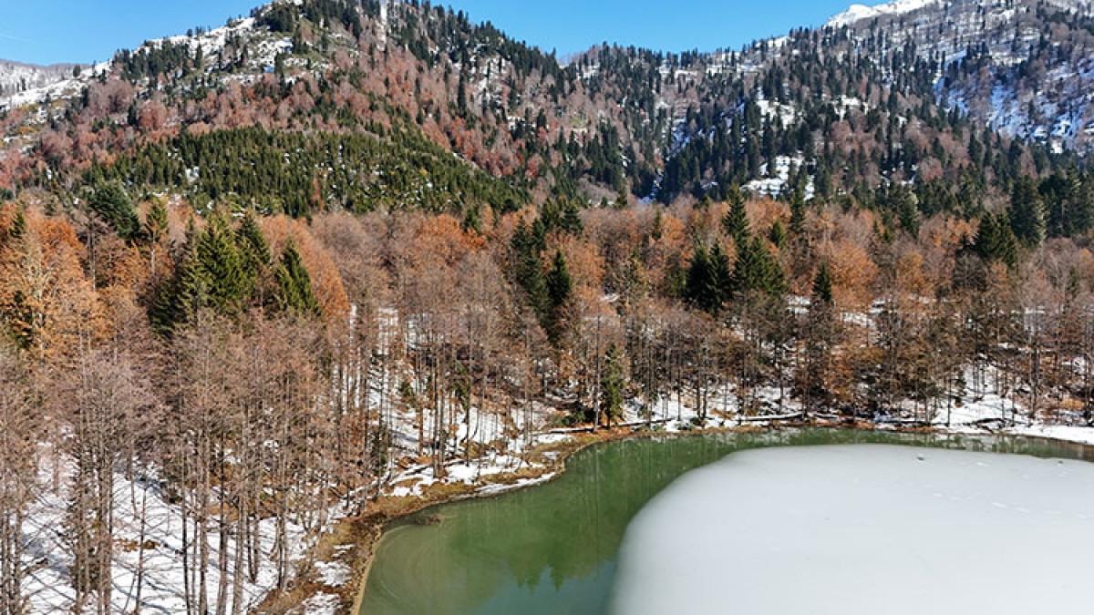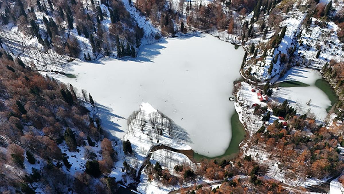 Yeşilin farklı tonlarının yanı sıra sarı, turuncu, kırmızı ve kahverenginin zengin renkleriyle bezeli ormanlar, donmuş göl yüzeyi ve karla kaplanmış ağaçlar, ziyaretçilere adeta bir kış cenneti sunuyor. Tabiat parkına gelen yerli ve yabancı turistler, bu eşsiz manzarada yürüyüş yapıp, fotoğraflar çekerek doğanın huzurunu yaşıyor.