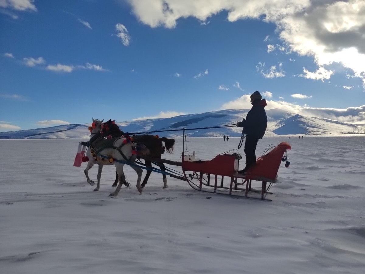 - Donma sonrası, gölde atlı kızak seferleri yeniden ziyaretçilere açıldı.