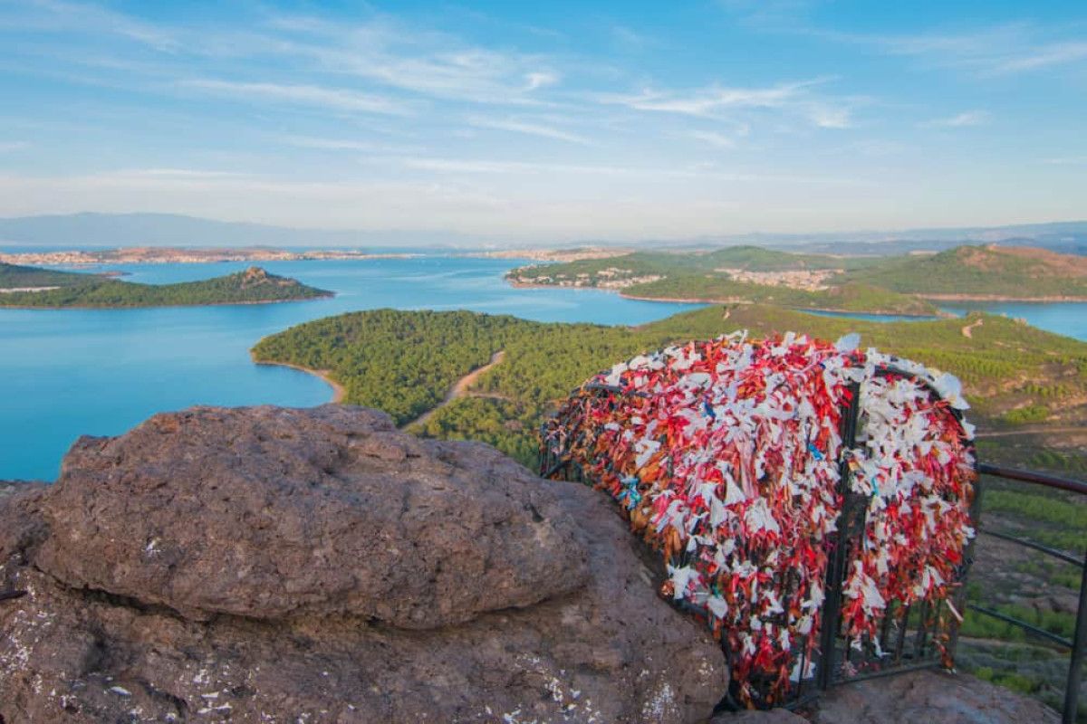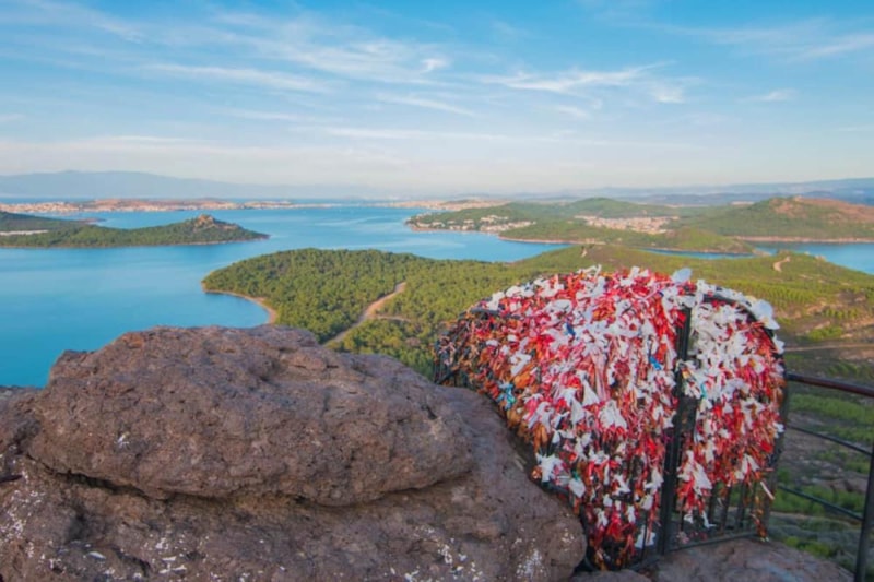 Biraz ileride, adanın arkasında saklanan Aşıklar Tepesi, yalnızca manzara için değil, Agios Yannis Kilisesi kalıntıları ve Sevim & Necdet Kent Kitaplığı ile hem doğanın hem de tarihi mirasın eşsiz bir buluşma noktası olarak ziyaretçilerini karşılıyor.