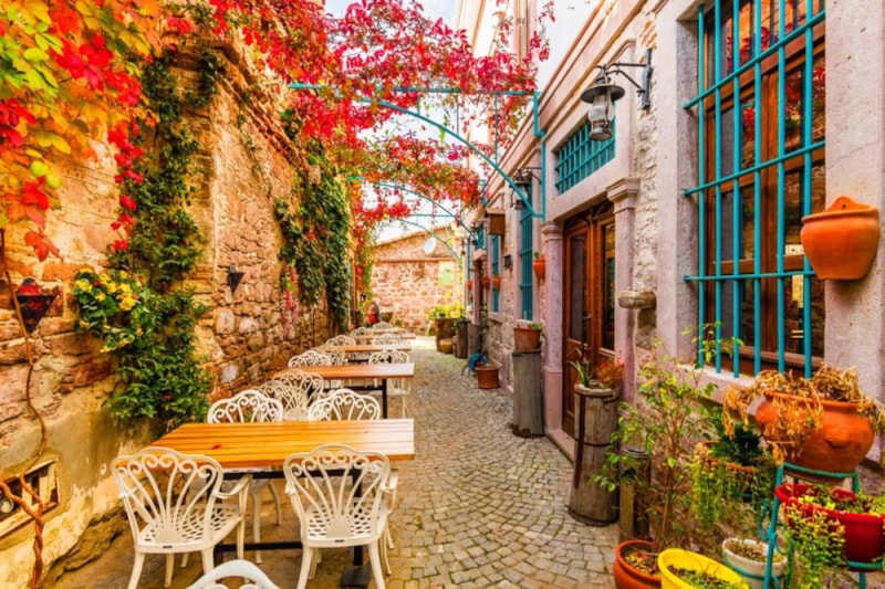 Rum mimarisinin süslediği dar sokaklar, Cunda’da sadece bir manzara değil, deniz, güneş, lezzet ve geçmişin izlerini bir araya getiriyor.