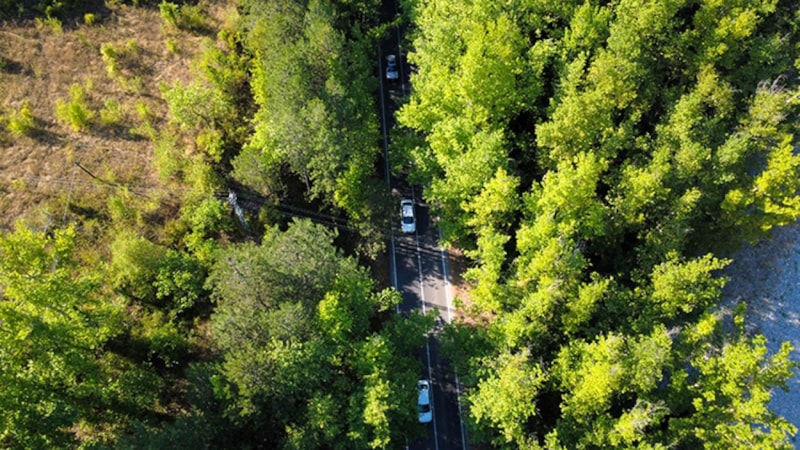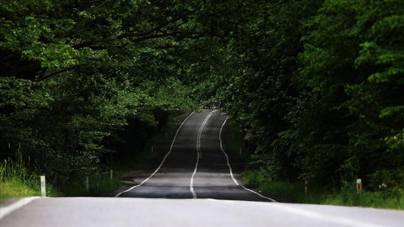 Yolun yaklaşık 5 kilometrelik kısmı, ağaçların gövdeleri ve dallarıyla tamamen gölgeleniyor.