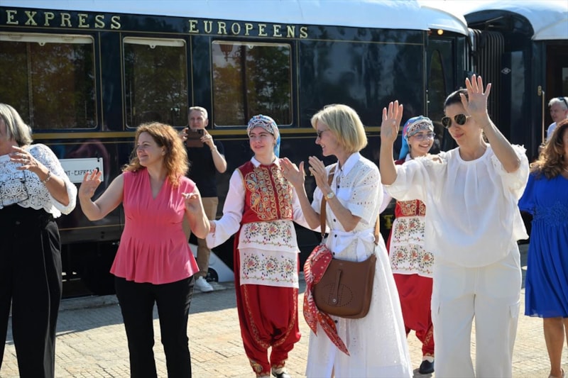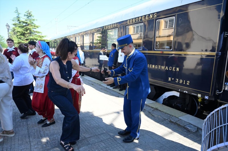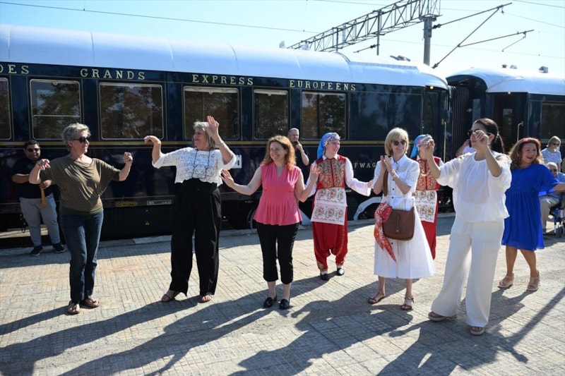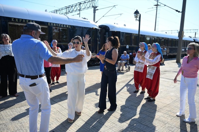 Trenin 64 yolcusu Edirne Garı’nda halk oyunları gösterisiyle karşılandı. Renkli kıyafetleriyle dans eden ekip, yolcuların büyük ilgisini çekerken, bazı turistler müziğe eşlik ederek dansçılarla birlikte ritme katıldı. Tren görevlileri de neşeli atmosfere dahil oldu.