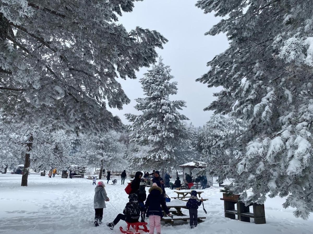 Karla kaplı doğanın sunduğu eşsiz manzara eşliğinde piknik yapan vatandaşlar, yol kenarındaki düzlüklerde mangal yakarak keyifli anlar yaşadı.