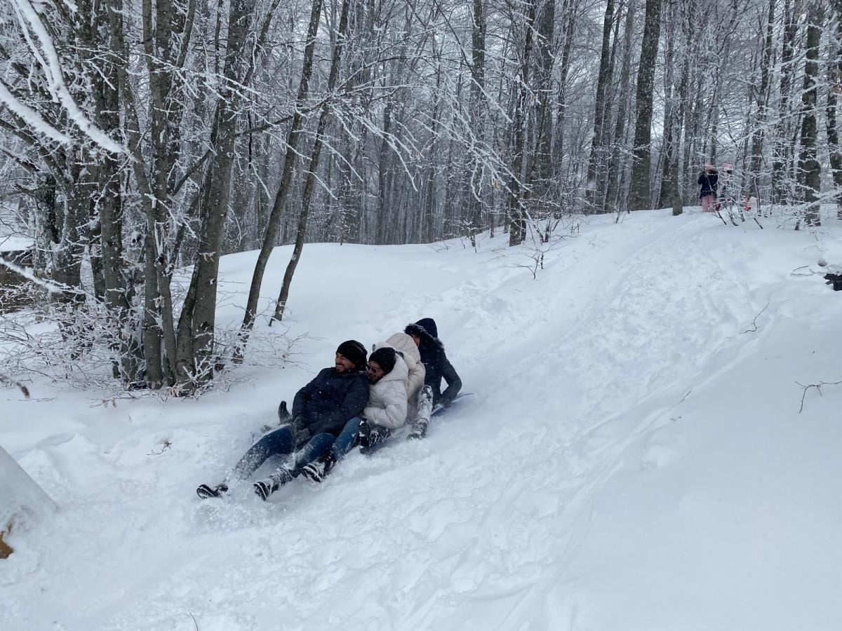 Beyaz örtüye bürünen Domaniç Dağları’nda temiz havanın ve doğanın tadını çıkaran doğa tutkunları, hafta sonunu fırsata çevirdi.