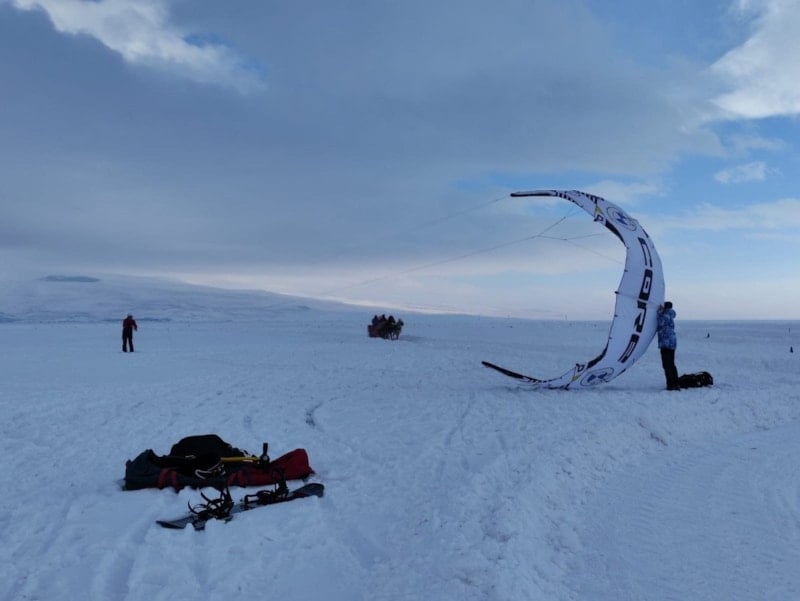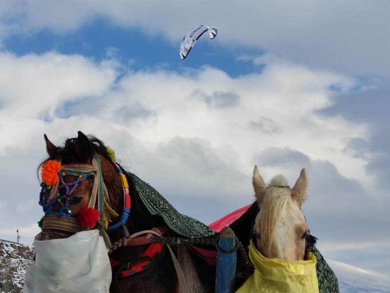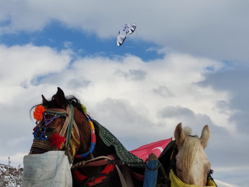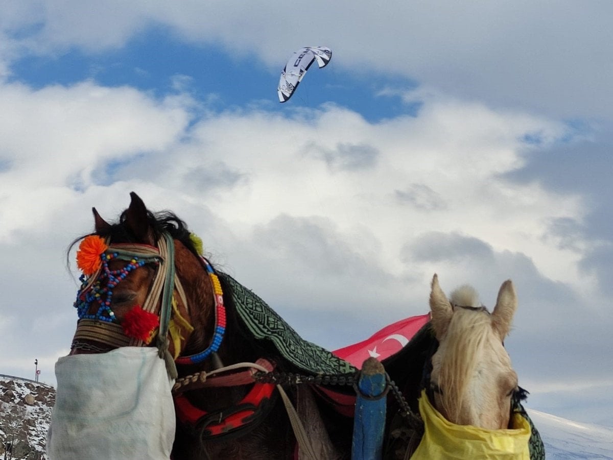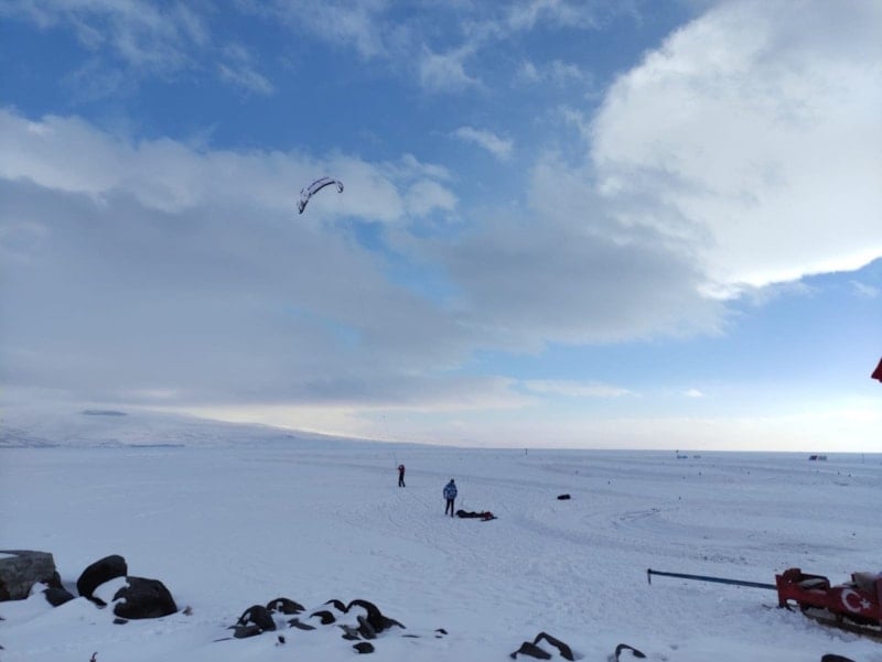 Çıldır Gölü üzerinde birçok etkinlik yapılıyor. Şu anda da bir sporcu arkadaşımız paraşütle uçuş gerçekleştiriyor. Atlı kızaklar, motorlu kızaklar, rahvan atlar burada yer alıyor. Uzaktan bakanlar gölün üzerinde durmanın zor olduğunu düşünüyor ama buranın öyle bir güzelliği var ki insanın içini ısıtıyor.