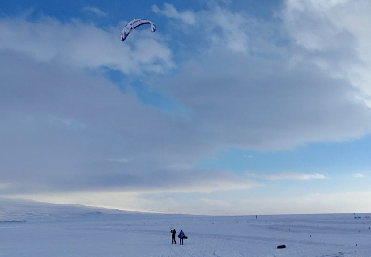 Kar ve buzla kaplanan göl üzerinde süzülen paraşüt, çevrede bulunan vatandaşlar ve ziyaretçilerin yoğun ilgisini çekti. Ortaya çıkan renkli görüntüler, izleyenlere adrenalin dolu dakikalar yaşatırken, bazı vatandaşlar bu anları cep telefonlarıyla kaydederek sosyal medya hesaplarında paylaştı.