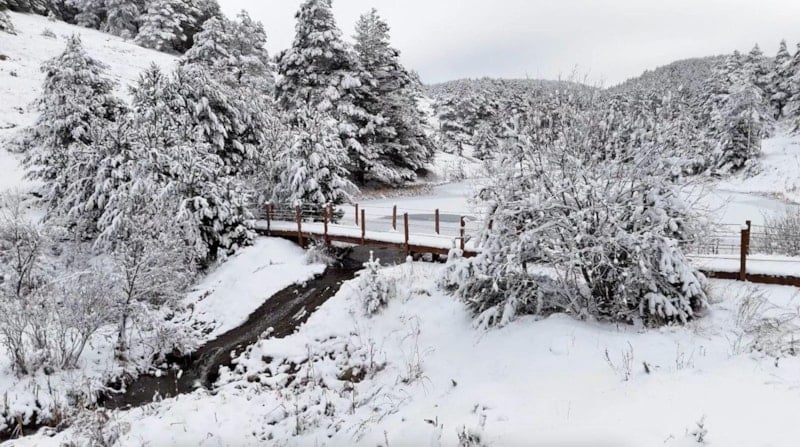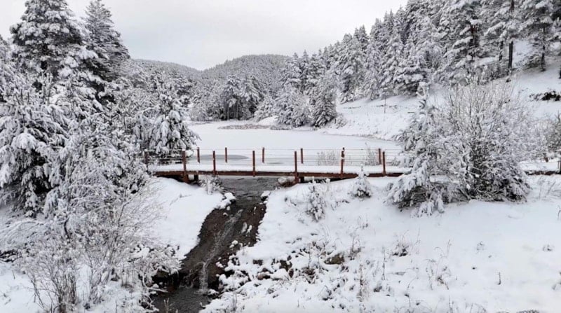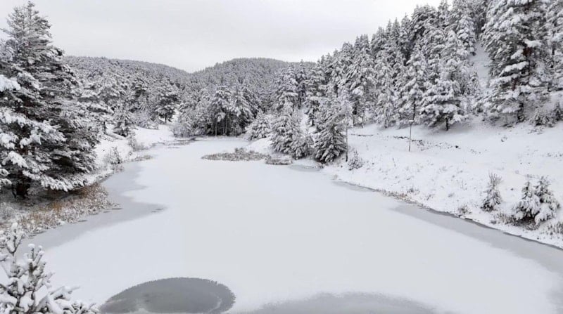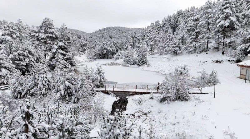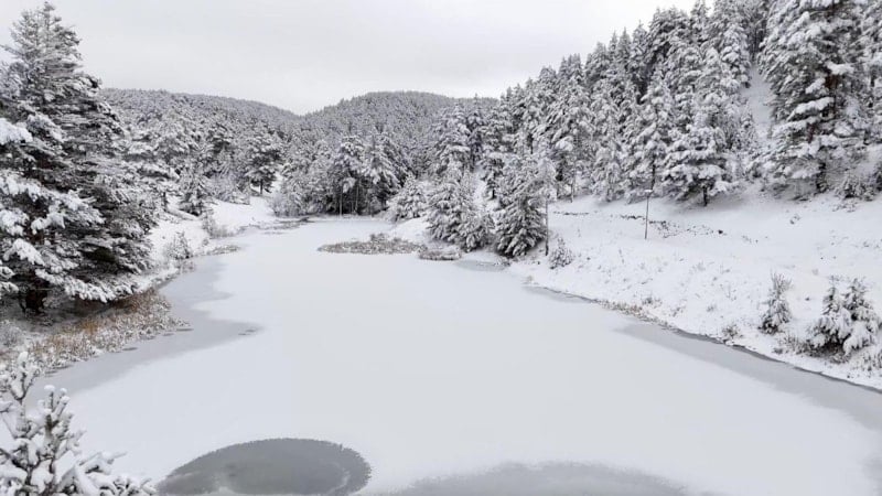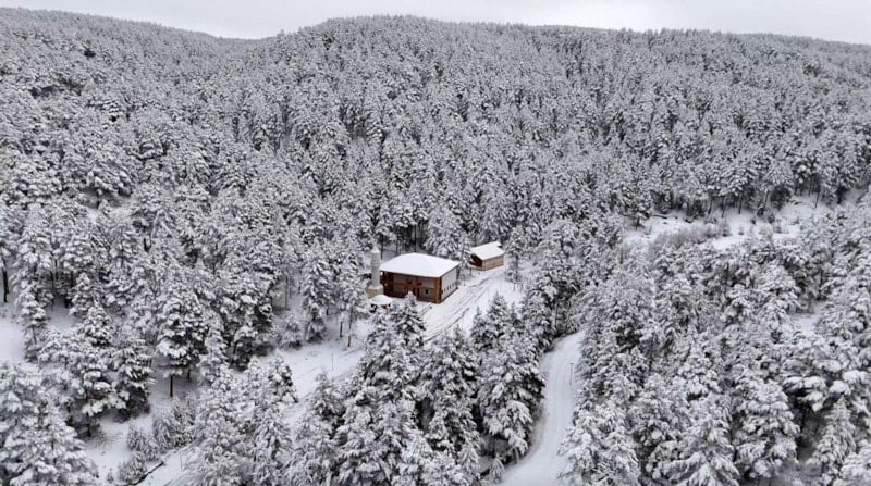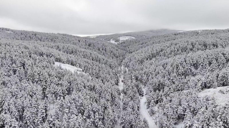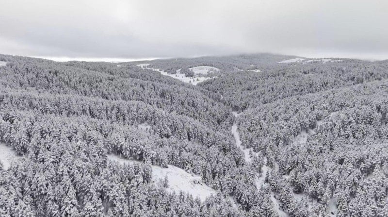 Kar yağışının ardından park, beyaz örtüyle kaplanarak çam ormanları arasında adeta tablo gibi bir manzara oluşturdu. Kar kalınlığının 1 metreyi bulduğu tabiat parkı, drone kameralarıyla havadan görüntülendi ve ziyaretçilere kartpostallık kareler sundu.