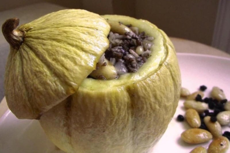 İçi oyulan kavuna baharatlı et harcı doldurularak yapılan sıra dışı bir saray yemeği.