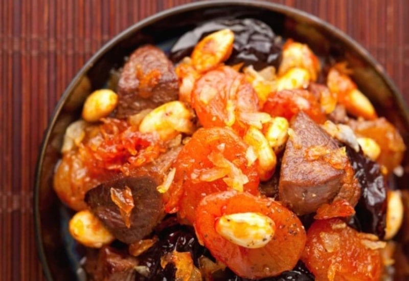 Kuzu eti, badem, kuru kayısı ve bal ile hazırlanan, tatlı ile tuzlunun mükemmel birleşimini sunan saray yemeği.