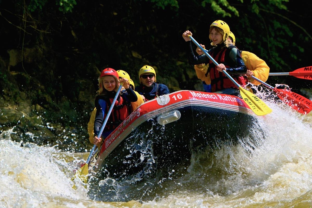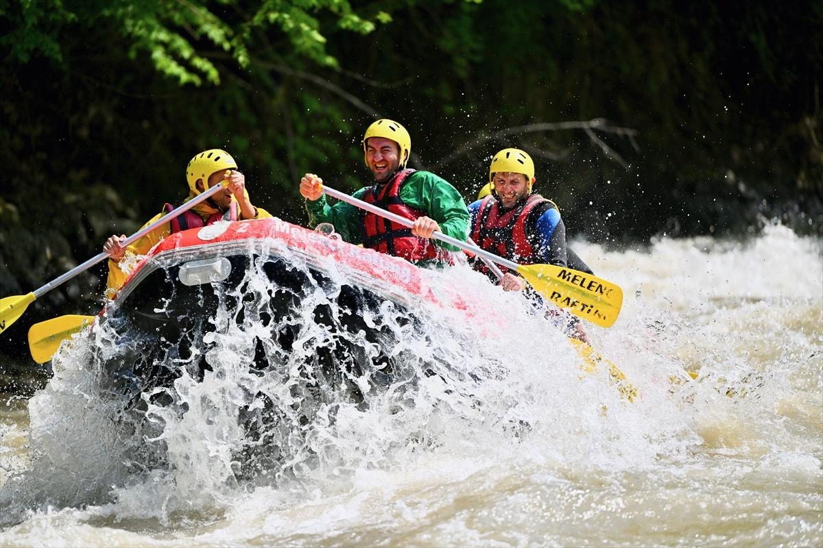 Hafta sonunu değerlendirmek isteyen maceraseverler, Düzce'nin Cumayeri ilçesindeki Melen Çayı'nda bulunan rafting tesislerine akın etti.