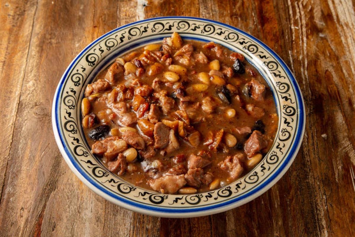 Genellikle kuzu eti kullanılır. İçerisinde erik, incir, badem, bal gibi tatlı bileşenler yer alır.