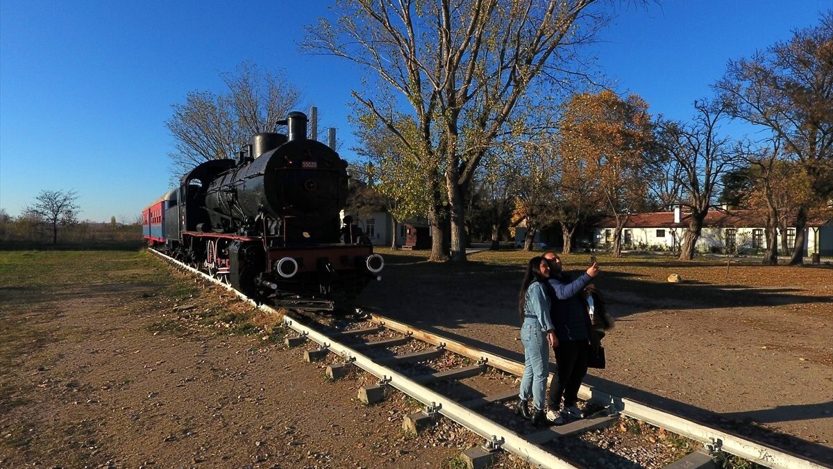 Kışa göz kırpan sarı yapraklı ağaçları fon yapan onlarca Edirneli ve kente gelen ziyaretçiler, en çok eski tren garını tercih ediyor.