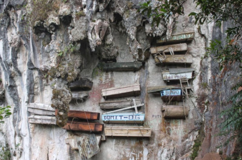 Filipinler’in Sagada kasabasında, ölüler yüksek kayalıklara yerleştirilen asma tabutlarda gömülüyor.