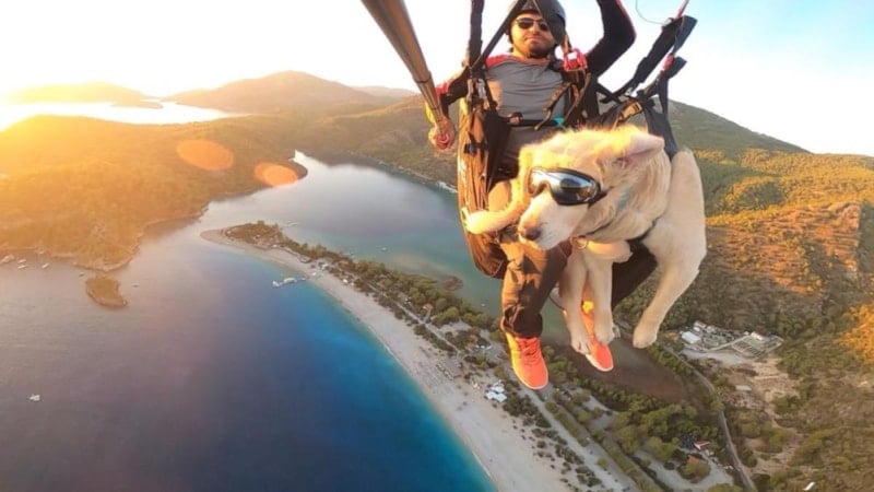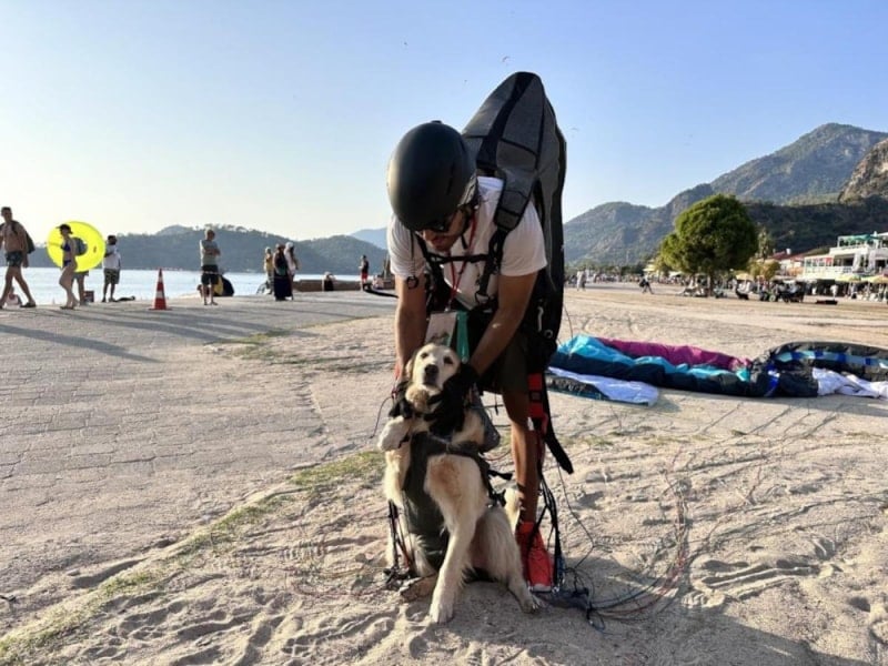 Festivallerde köpeğimle birlikte uçuyoruz. Toplam 5 kez uçuş gerçekleştirdik. Çok istekli ve heyecanlıydı. Çok sakin şekilde manzarayı izledi. Eminim parmakları olsa paraşütle kendisi uçacak. Aksilik olmazsa farklı etkinliklerde de uçuş yapacağız.