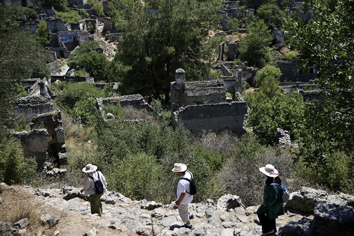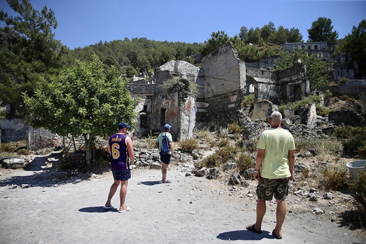 Muğla'nın Fethiye ilçesinde yıllar önce terk edildiği için "hayalet köy" olarak da anılan ve kesin korunacak hassas alanlar arasında bulunan Kayaköy, ziyaretçilerin dikkatini çekiyor.
