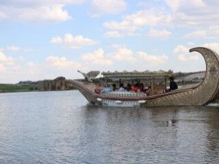 Çalışmalar kapsamında ilçede bulunan önemli Frig eserleri ve motifleri temel alınarak hazırlanan 'Kral Midas' isimli Frig kayığı, göle indirildi.