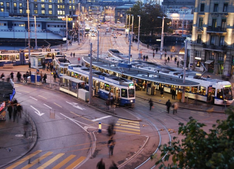Zürih, yüksek verimlilik ve güvenilir ulaşım altyapısıyla tanınıyor. Tramvay ve otobüsler, trafik sinyalleriyle entegre şekilde çalışıyor ve gecikmeleri minimuma indiriyor.