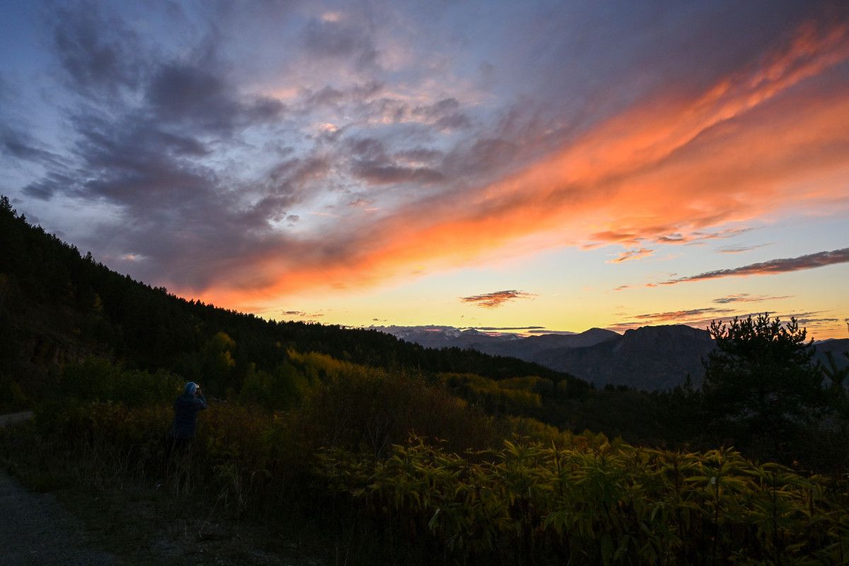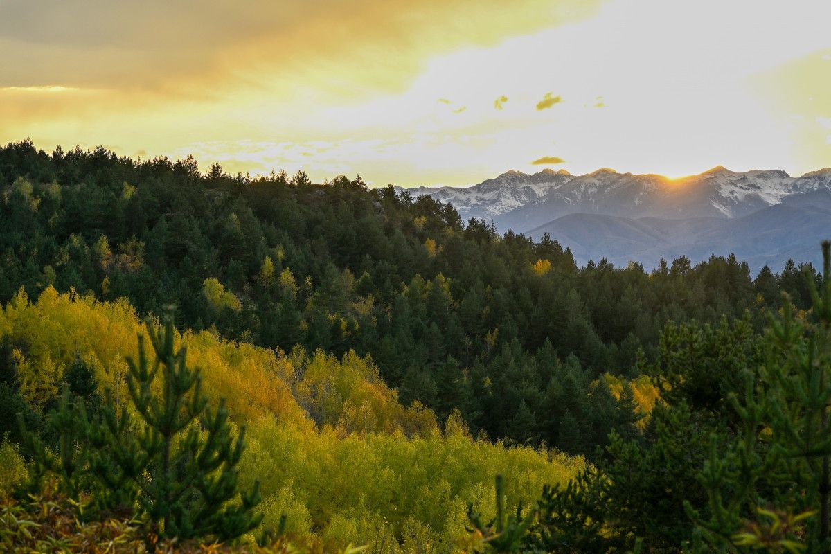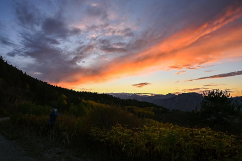 Her yıl bu zamanlarda buraya mutlaka geliyoruz. Çünkü sarının her tonunu görmek mümkün. Akşamüstü geldiğinizde gün batımıyla birlikte olağanüstü kareler yakalanıyor. Bugün güneş, karla kaplı Abdalmusa Dağı’nın üzerinden battı. Sonbaharın tam ortasındayız, ama Gümüşhane’de bu güzellik Kasım sonuna kadar devam ediyor. Bunun nedeni, rakım farkının çok fazla olması.