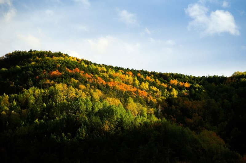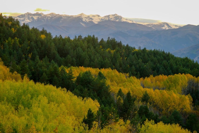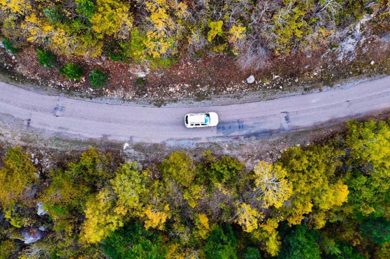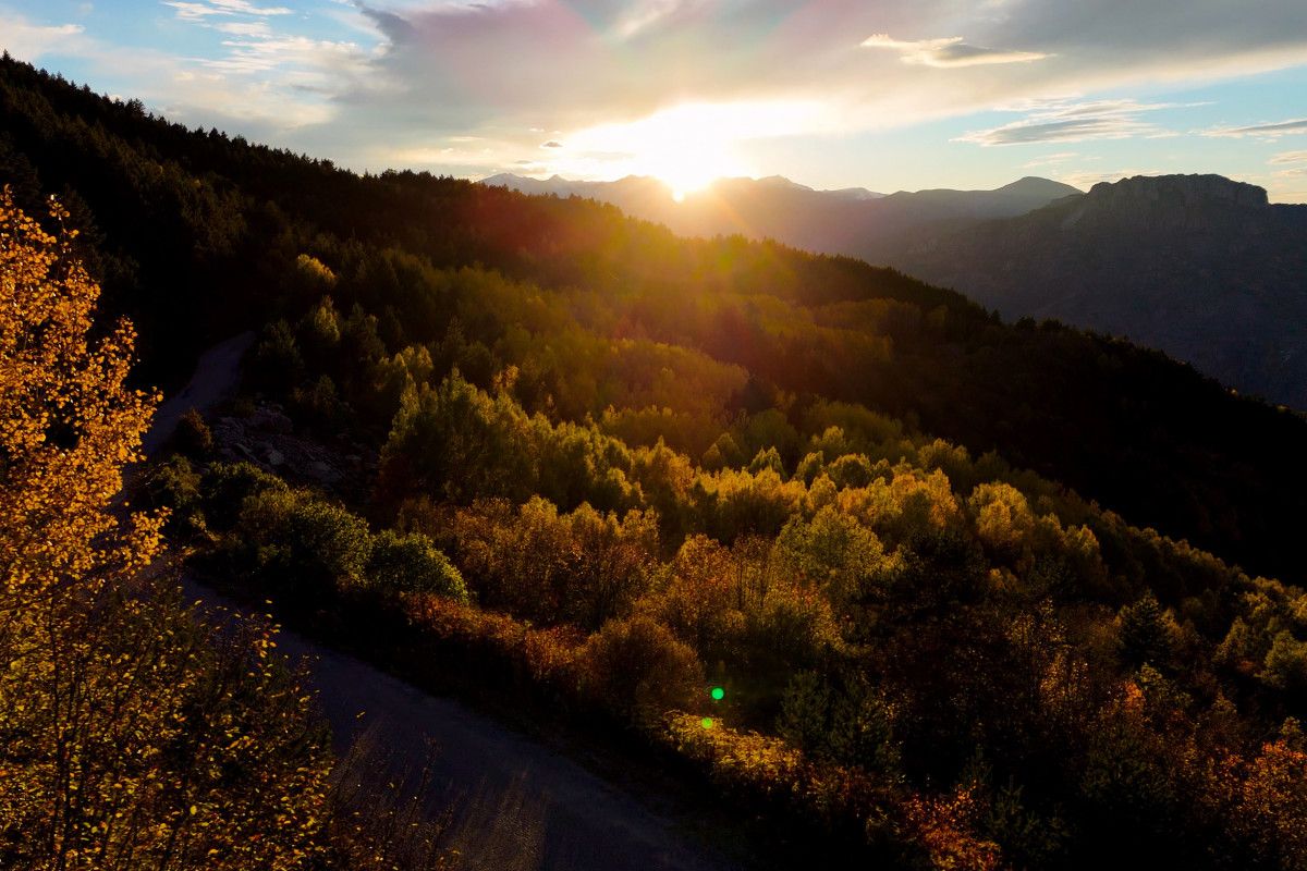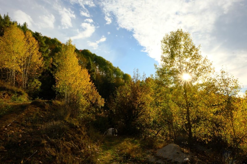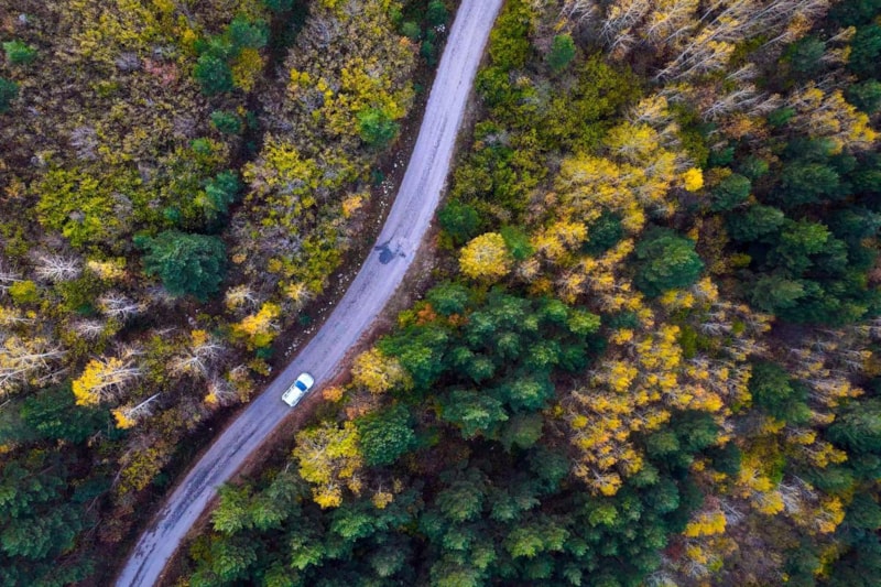 Yol boyunca uzanan titrek kavakların altın sarısı yaprakları, sarı çam ormanlarının canlı yeşili ve meşe ağaçlarının kahverengi tonları, doğanın zengin renk paletini gözler önüne seriyor.