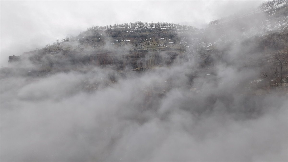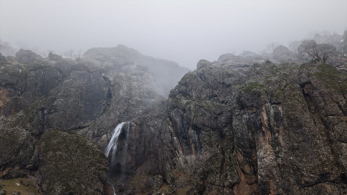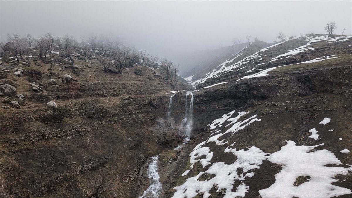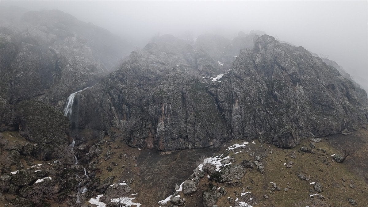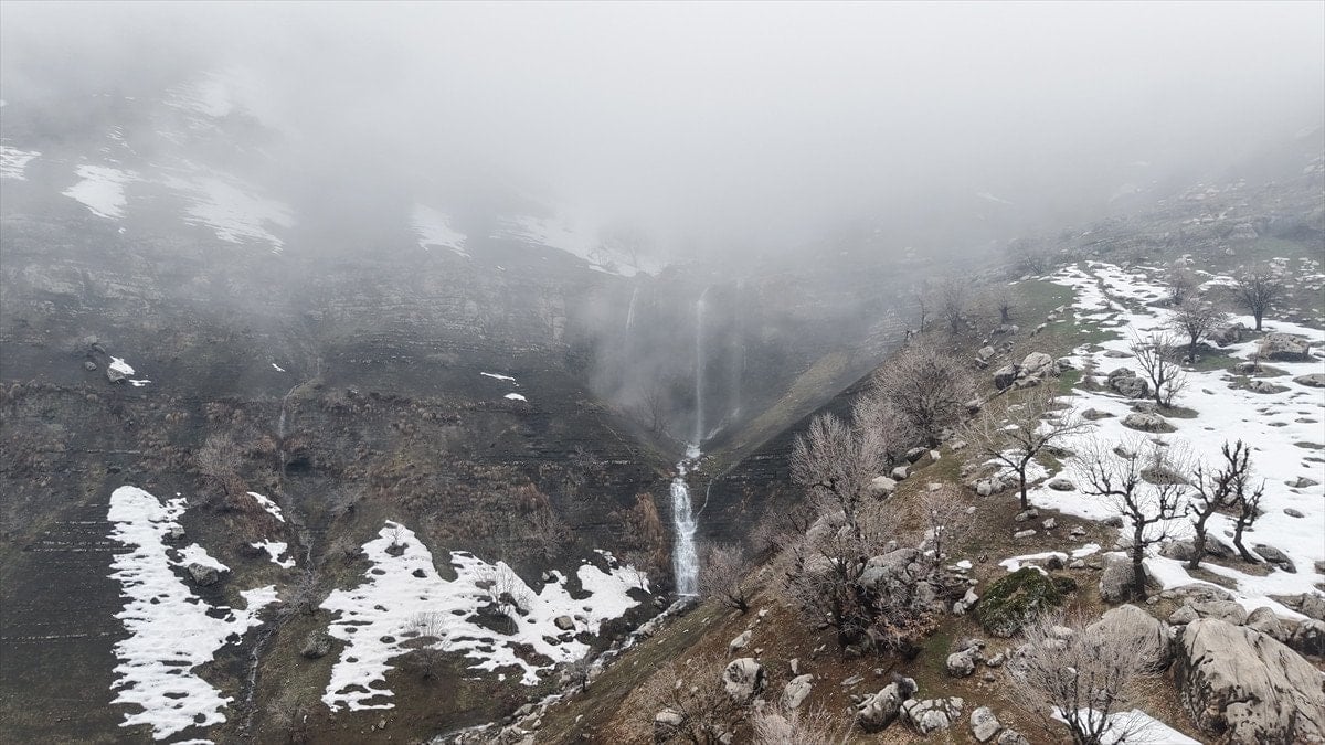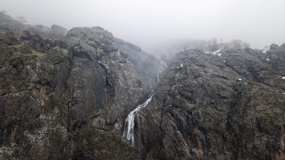 - Şelaleler, sisle kaplı yüksek kesimlerde drone ile görüntülendi.