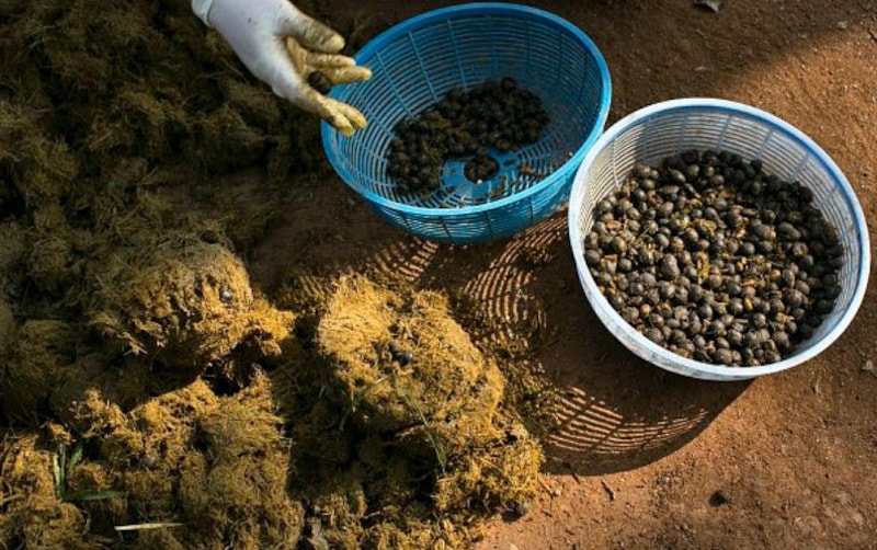 Tayland’da üretilen Black Ivory Coffee, filler tarafından sindirilen kahve çekirdeklerinden elde ediliyor.