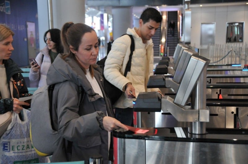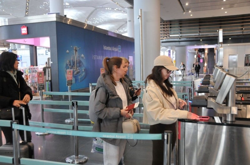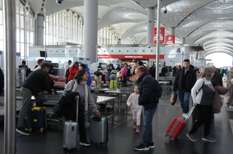 İstanbul Havalimanı’nda güvenlik ve İGA ekipleri, x-ray kontrol noktaları ile terminal girişlerini açık tutarak yolcu akışını hızlandırmaya çalıştı. Terminale giriş yapan yolcular, bilet ve bagaj işlemleri için iç ve dış hat kontuarlarında sıraya girdi. Çocuklu aileler için özel bölümler oluşturulurken, pasaport bankolarında e-pasaport yönlendirmeleri yapıldı.