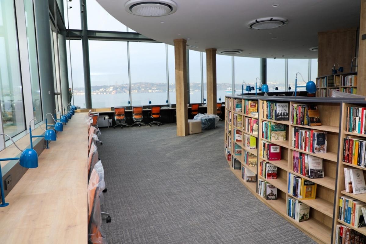 Haliç manzaralı platformu, kütüphaneye ayrı bir cazibe katıyor.