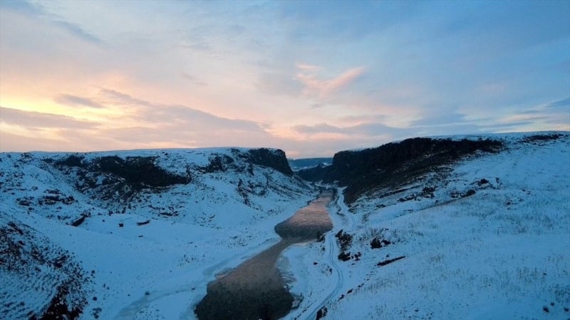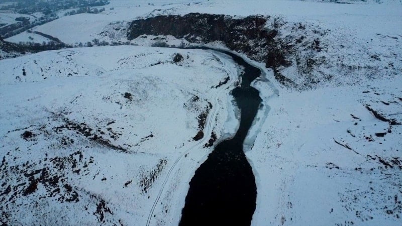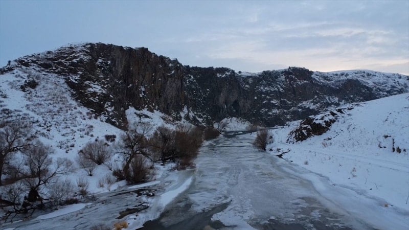 Soğuk havanın etkisiyle vadiden geçen suyun bazı bölümleri buz tuttu. Karla kaplı kayalıklar ve kısmen donan su yüzeyi, kanyonda etkileyici bir kış atmosferi oluşturdu.