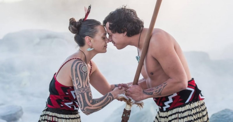 Maori kültüründe hongi adı verilen selamlaşma biçiminde, kişiler burunlarını birbirine dokundurarak kutsal nefesi paylaşıyor.