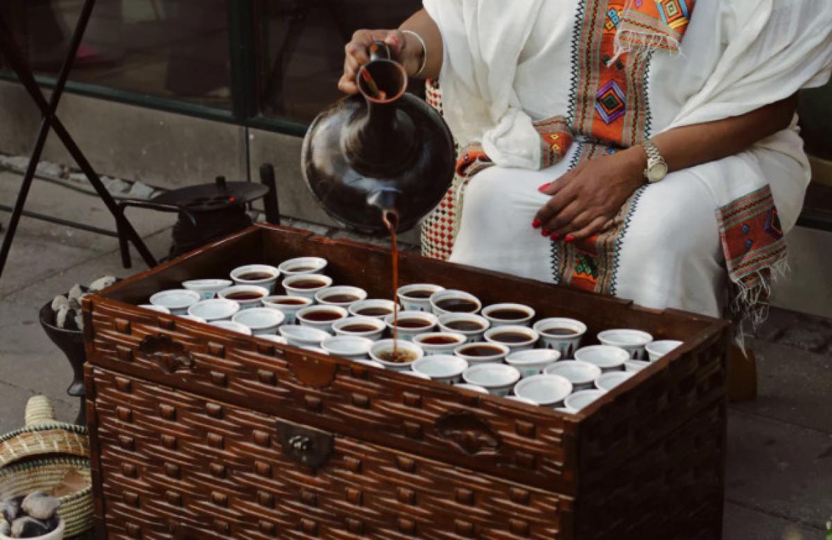 Etiyopya’da misafir ağırlamanın en kıymetli yolu, geleneksel kahve törenidir. Ev sahibi, yeşil kahve çekirdeklerini misafirin önünde kavurur, öğütür ve özel cezvelerde hazırlar.